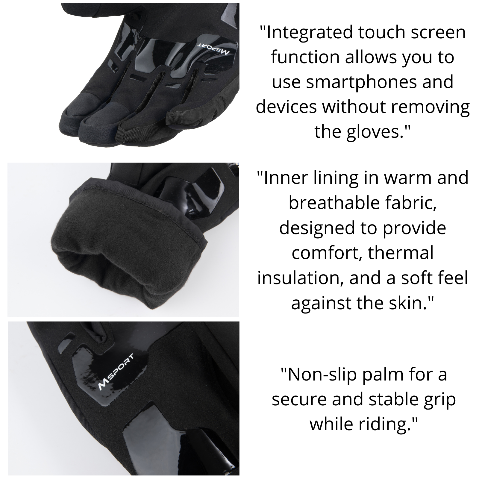 Gli inserti antiscivolo sul palmo garantiscono presa sicura, migliorando stabilità e sicurezza alla guida. Inoltre, i guanti sono compatibili con touchscreen, permettendo l’uso di smartphone o dispositivi senza rimuoverli.